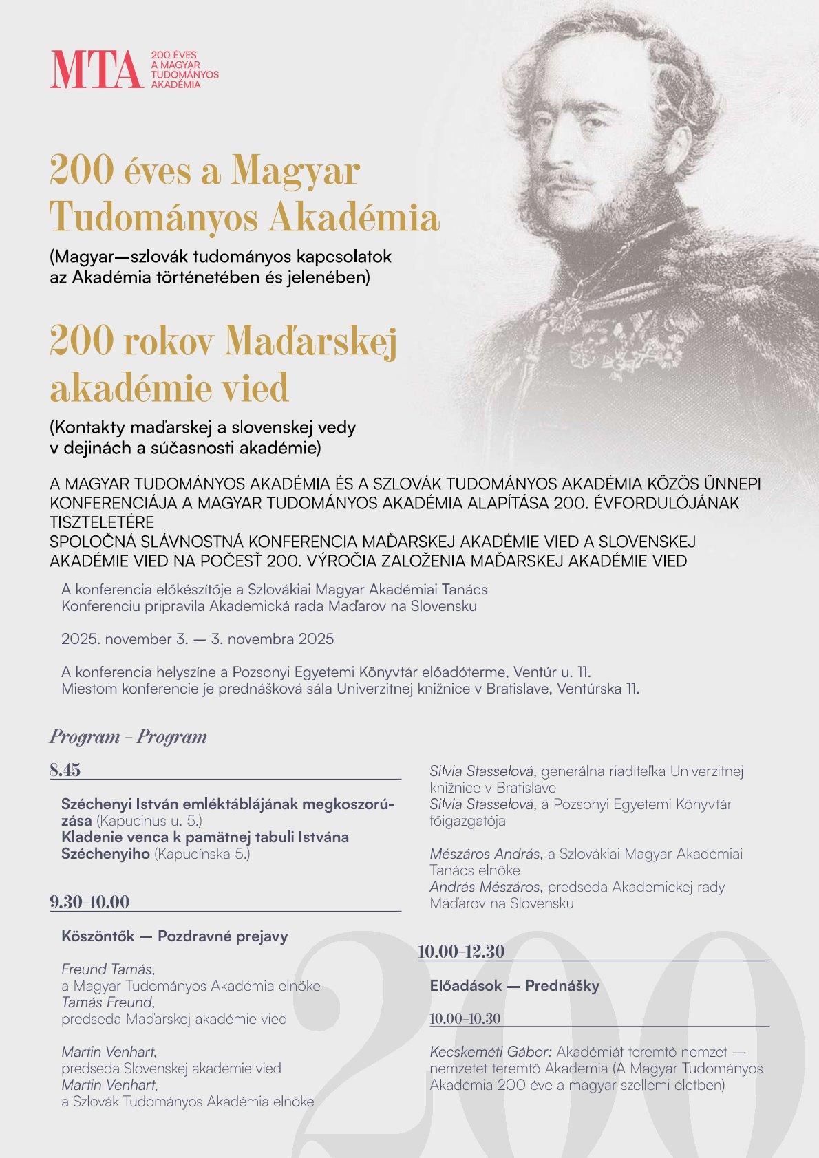 Pozvánka na spoločná slávnostnú konferenciu Maďarskej akadémie vied a Slovenskej Akadémie vied na počesť 200. výroočia založenia Maďarskej akadémie vied