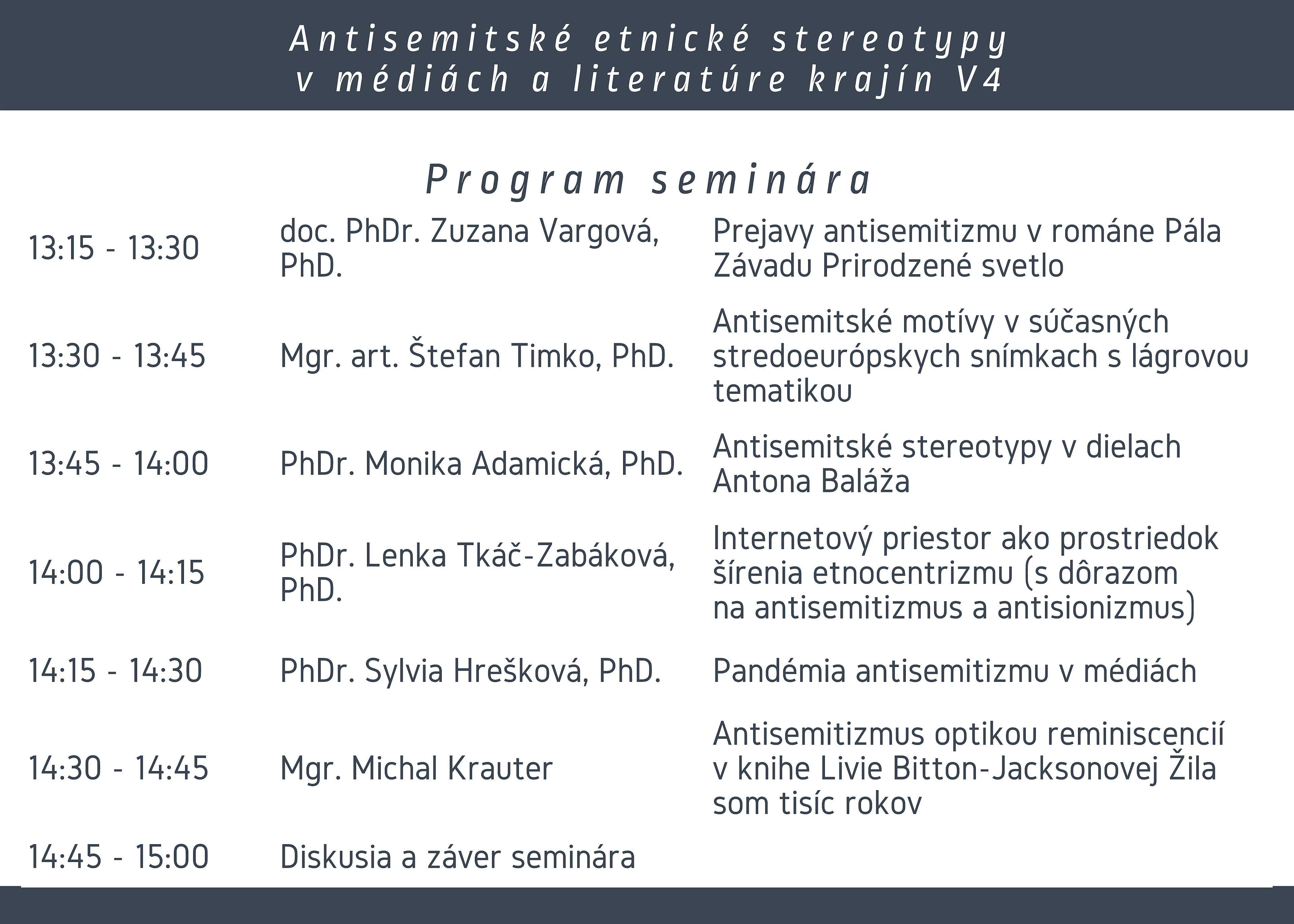 Odborný seminár – Antisemitské etnické stereotypy v médiách a literatúre krajín V4